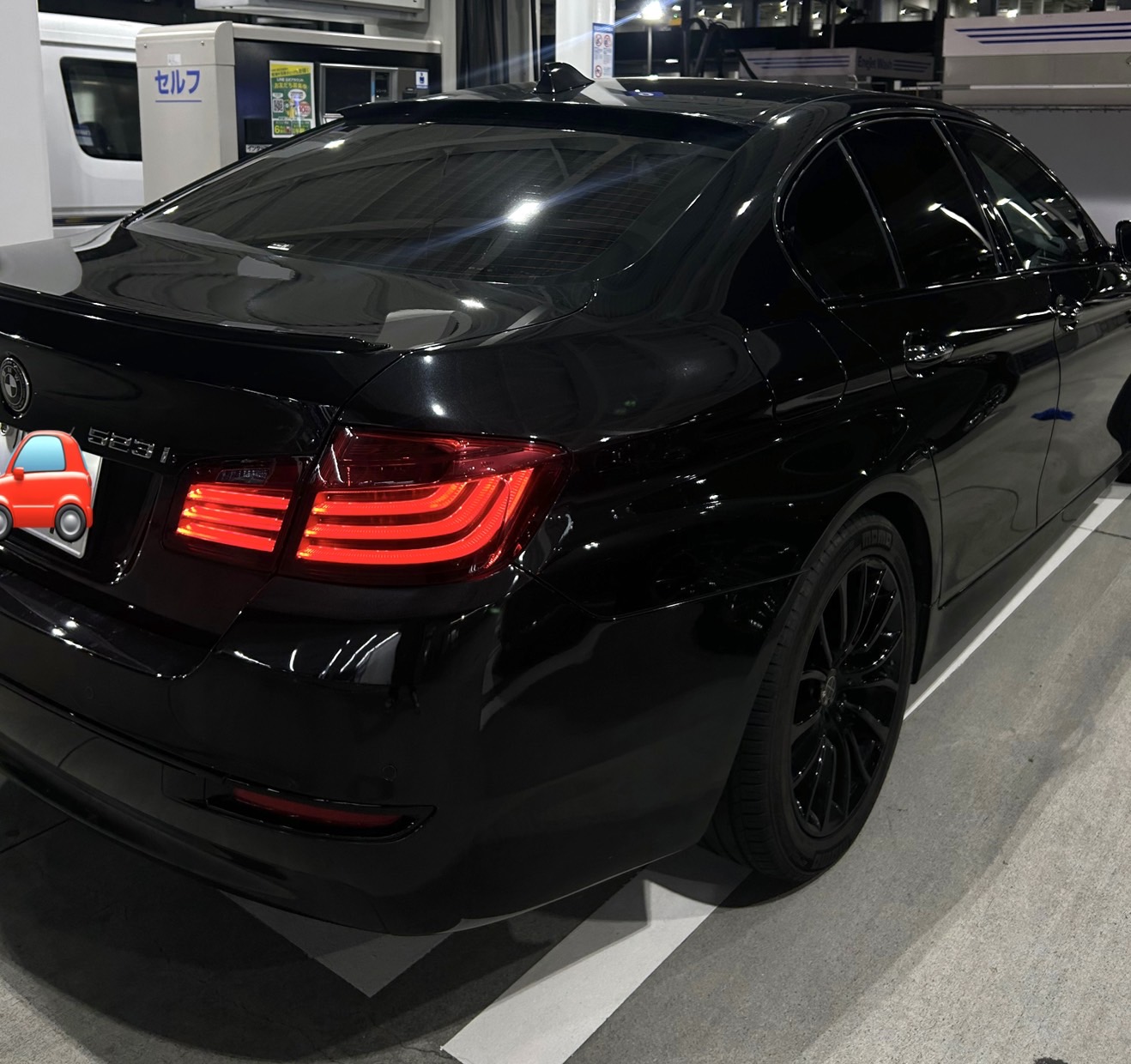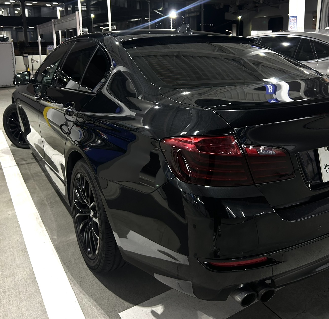 BMWの上質なセダン、523i Luxuryです。オールブラックで統一されている黒塗り車の完成形だと思います。単体で40万円ほどのギラッギラのホイールです!足回り内外装共に絶好調です。車検契約時から2年取得します